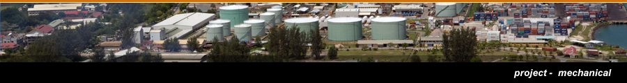 The Seychelles Petroleum Project The expansion project for the Seychelles Petroleum Company consists of: A new tank farm at the New Port Depot consisting of six vertical storage tanks of capacity between 3300 and 6000 cubic metre and one water storage tank of capacity of 1200 cubic metre. Four LPG bullets of 250 cubic metres each. Two pumphouses, one of six pumps for bunkering and the second of two pumps to supply jet fuel to the Airport. An eight kilometre pipeline to the Airport including three bridge crossings on piles and one underwater crossing. The pipeline has pig launching and receiving facilities and is designed for pinging. Fire protection installation at the new tank farm consisting of water storage tank, diesel pumpsets, pipelines, oscillating monitors, hydrants, deluge and foam systems. The system is semi-automatic with heat and flame detectors and corresponding control gear, cabling and piping. Fire protection installation for the following existing depots: The old tank farm at the New Port Depot, the St. Anne Island Tank Farm, the Airport Depot and the new tank farm at Praslin. Additional storage tank of 6600 cubic metre capacity at St. Anne Island. |